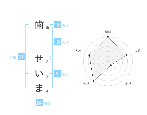 歯 せいまさんの総格は24画の5点!