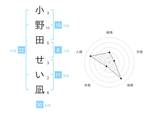 小野田 せい凪さんを姓名の画数から五運を鑑定