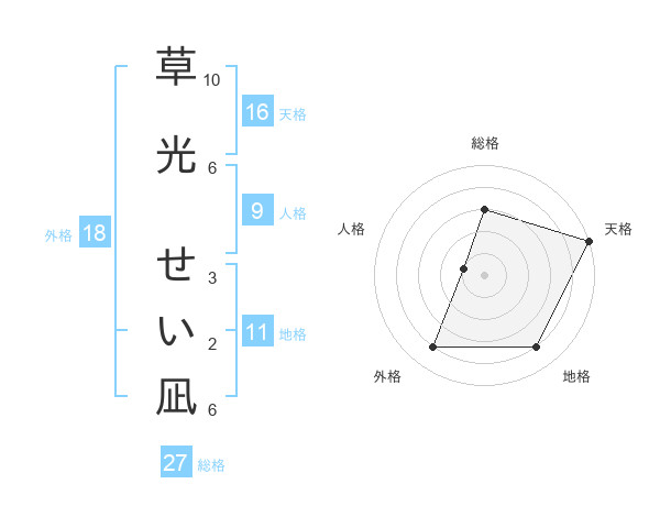 草光 せい凪さんの天格は16画の5点!