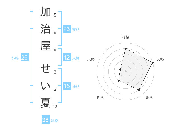 加治屋 せい夏さんの天格は23画の5点