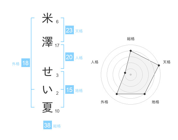 米澤 せい夏さんを姓名の画数から五運を鑑定