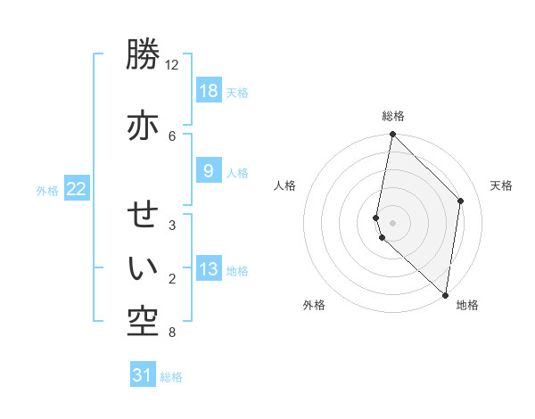 勝亦 せい空さんを姓名の画数から五運を鑑定