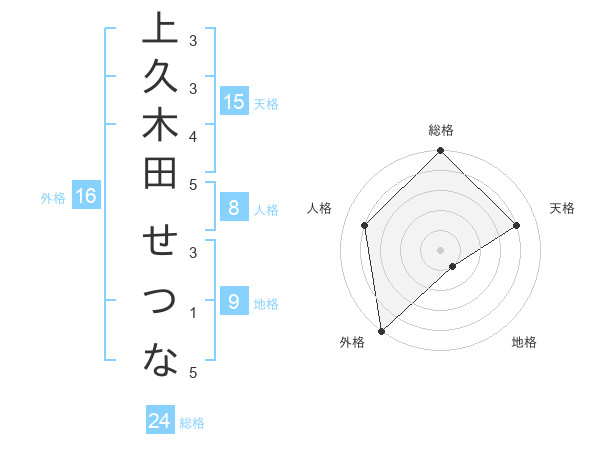 上久木田 せつなさんの外格は16画の5点!