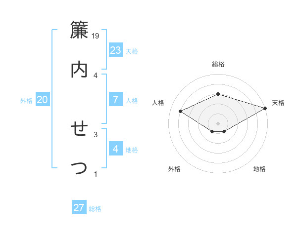 簾内 せつさんの天格は23画の5点!