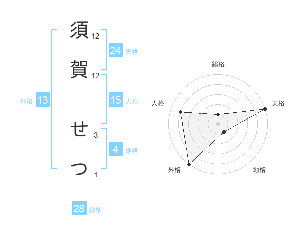須賀 せつさんの天格は24画の5点!