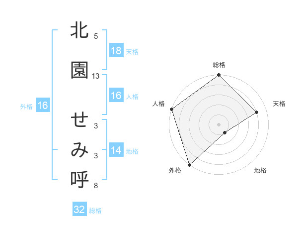 北園 せみ呼さんを姓名の画数から五運を鑑定