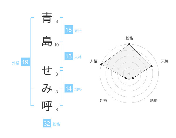 青島 せみ呼さんを姓名の画数から五運を鑑定