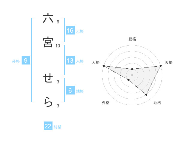 六宮 せらさんの天格は16画の5点!