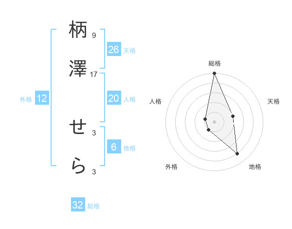 柄澤 せらさんの総格は32画の5点!