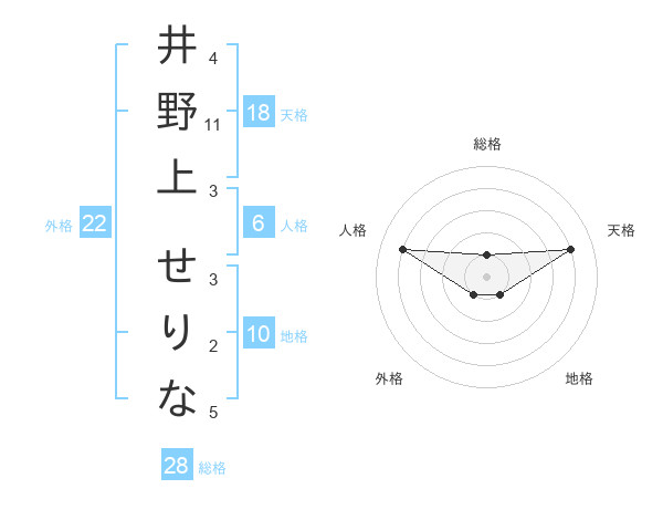 井野上 せりなさんを姓名の画数から五運を鑑定