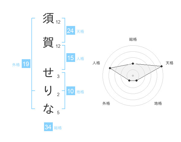 須賀 せりなさんを姓名の画数から五運を鑑定