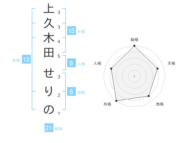 上久木田 せりのさんの外格は13画の5点!