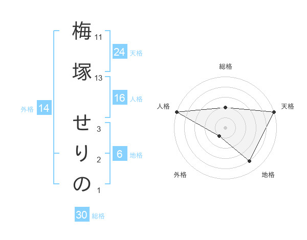 梅塚 せりのさんを姓名の画数から五運を鑑定