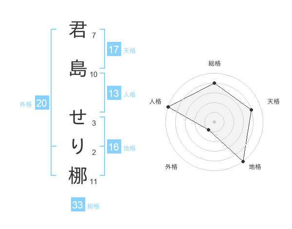 君島 せり梛さんを姓名の画数から五運を鑑定