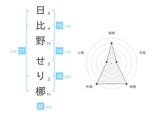 日比野 せり梛さんの外格は21画の5点!