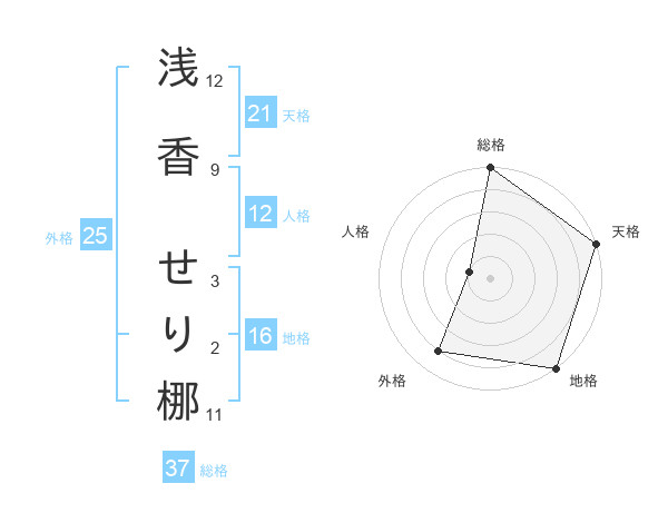 浅香 せり梛さんを姓名の画数から五運を鑑定