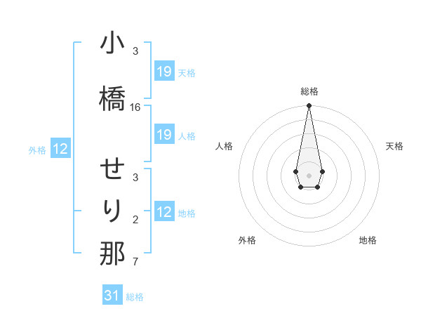 小橋 せり那さんを姓名の画数から五運を鑑定