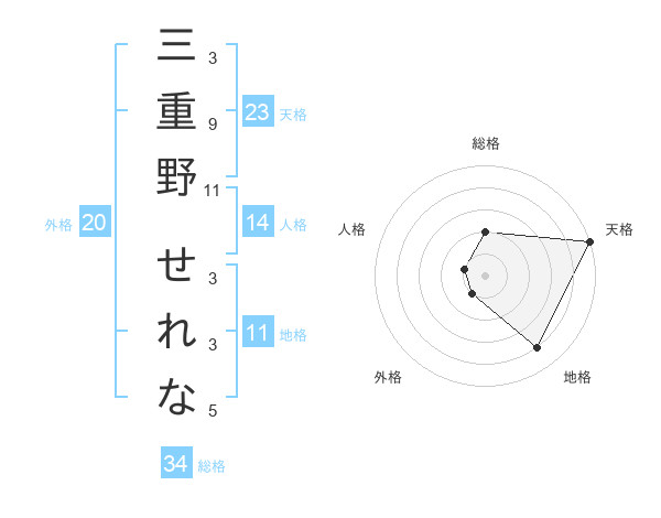 三重野 せれなさんの天格は23画の5点!
