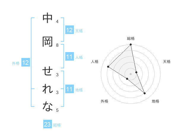 中岡 せれなさんを姓名の画数から五運を鑑定