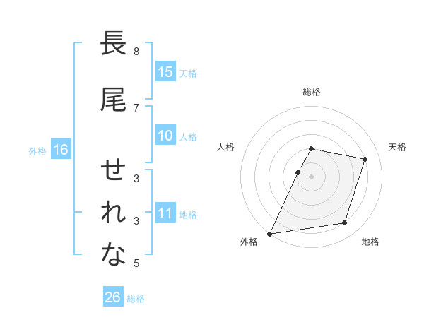 長尾 せれなさんを姓名の画数から五運を鑑定