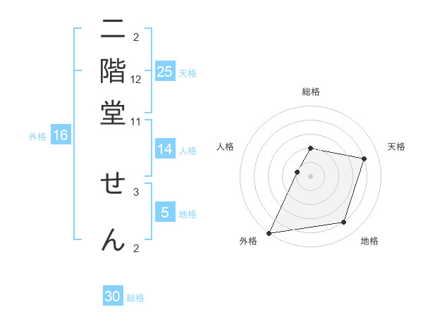 二階堂 せんさんを姓名の画数から五運を鑑定