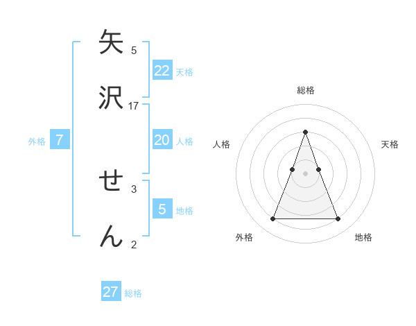 矢沢 せんさんを姓名の画数から五運を鑑定