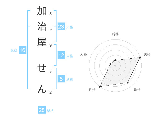 加治屋 せんさんを姓名の画数から五運を鑑定