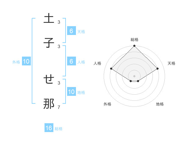 土子 せ那さんの総格は16画の5点!