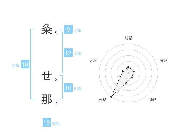 粂 せ那さんの外格は16画の5点!