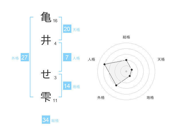 亀井 せ雫さんの総格は34画の2点!