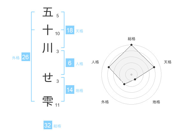 五十川 せ雫さんを姓名の画数から五運を鑑定