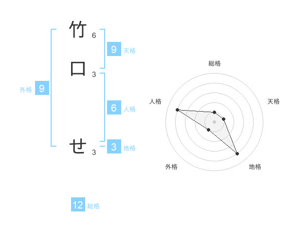 竹口 せさんの総格は12画の1点!