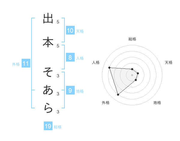 出本 そあらさんの総格は19画の1点!