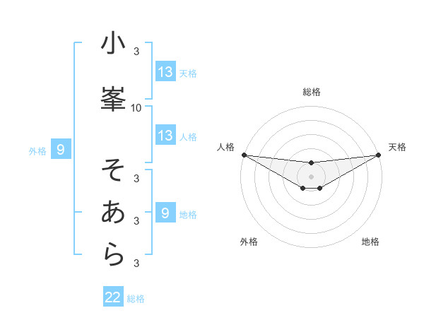 小峯 そあらさんを姓名の画数から五運を鑑定