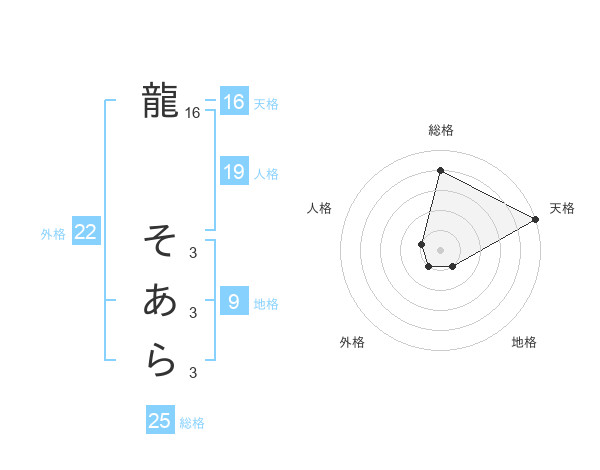龍 そあらさんの総格は25画の4点!