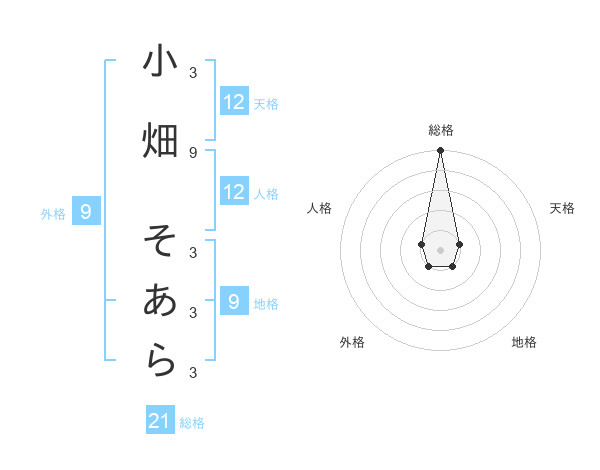 小畑 そあらさんの総格は21画の5点!
