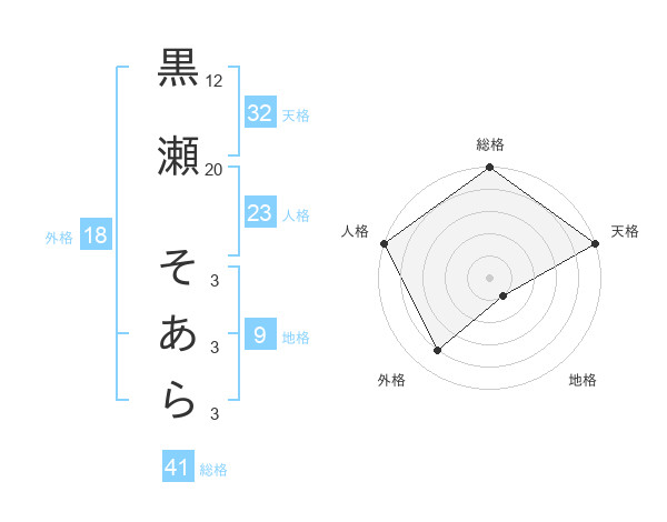 黒瀬 そあらさんを姓名の画数から五運を鑑定