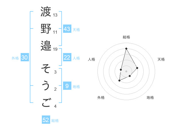 渡野邉 そうごさんを姓名の画数から五運を鑑定