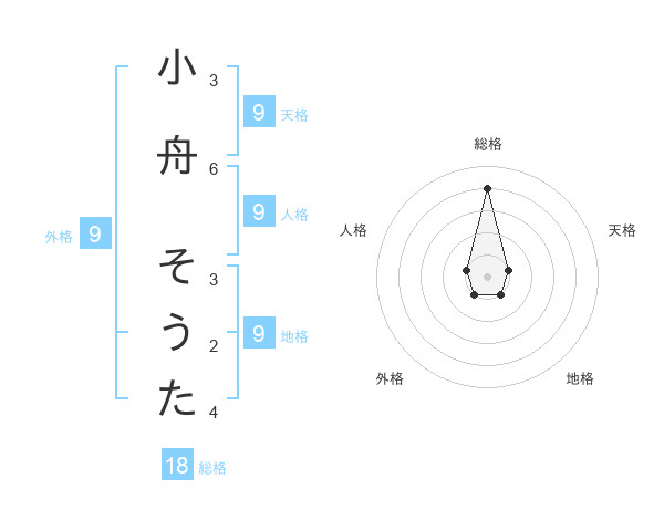 小舟 そうたさんの地格は9画の1点!