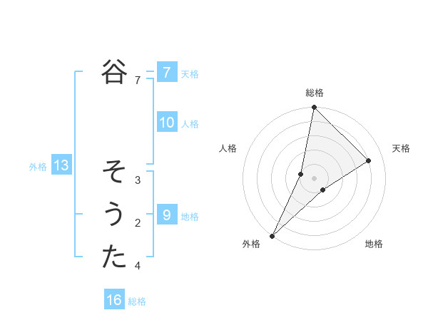 谷 そうたさんの外格は13画の5点!