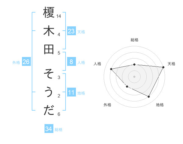 榎木田 そうださんを姓名の画数から五運を鑑定