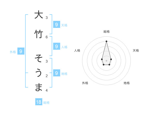 大竹 そうまさんを姓名の画数から五運を鑑定