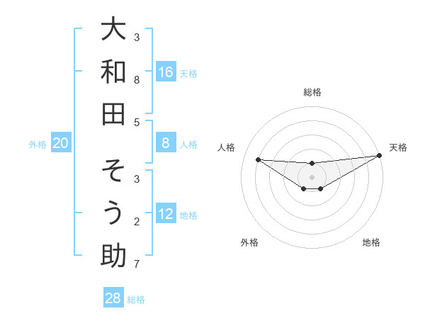 大和田 そう助さんを姓名の画数から五運を鑑定