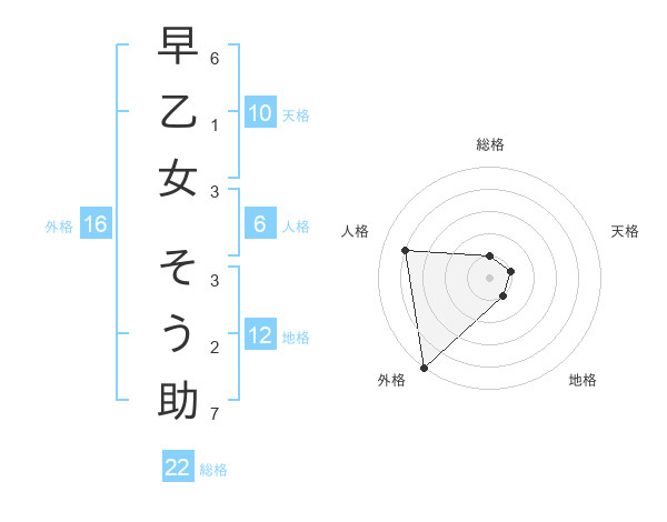 早乙女 そう助さんを姓名の画数から五運を鑑定