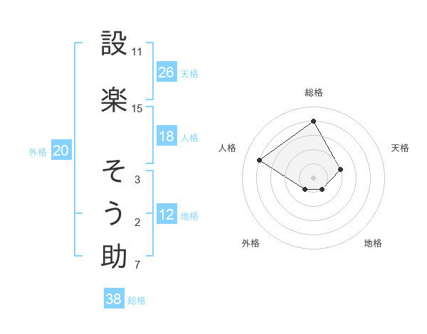 設楽 そう助さんを姓名の画数から五運を鑑定