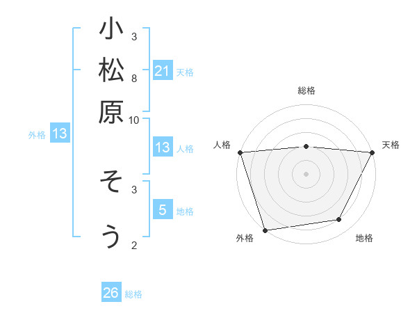 小松原 そうさんの外格は13画の5点!