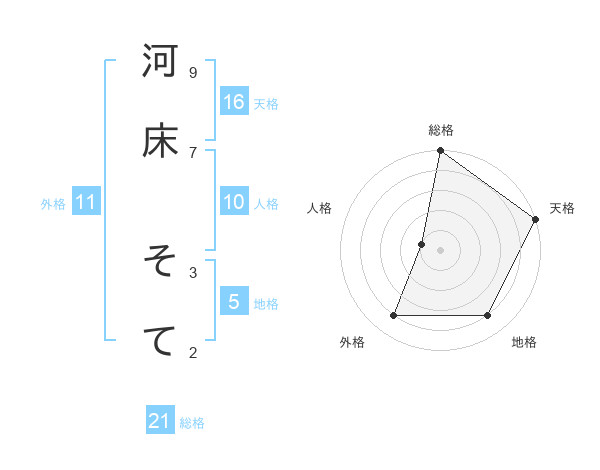 河床 そてさんの総格は21画の5点!