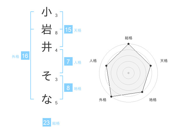 小岩井 そなさんの総格は23画の5点!
