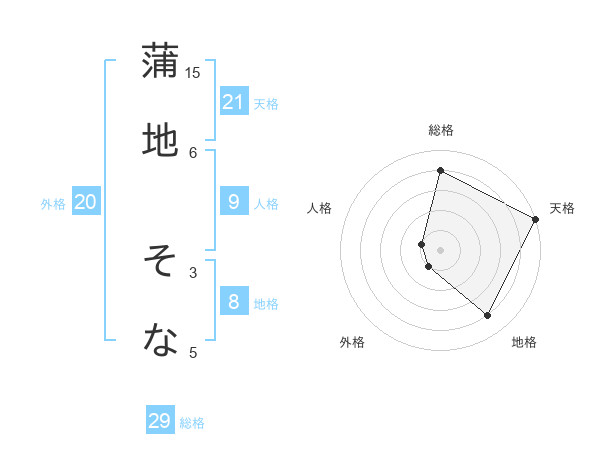 蒲地 そなさんの総格は29画の4点!