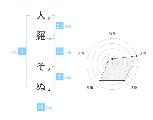 人羅 そぬさんの外格は6画の4点!